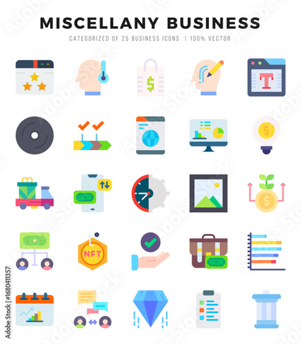 Miscellany Business web icons in Flat style.