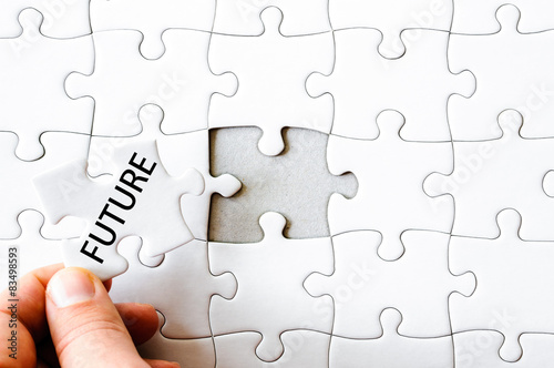 Missing jigsaw puzzle piece with word FUTURE