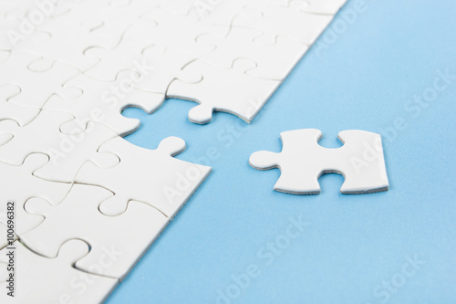 Missing jigsaw puzzle pieces. Business concept. Compliting final task