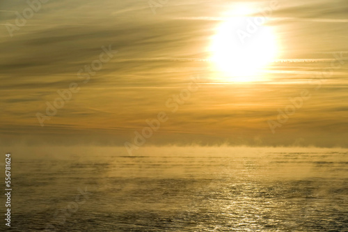 Mist across the sea at sunrise; Shaldon, Devon, England