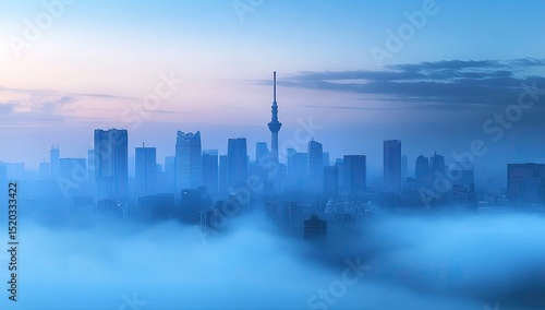 Misty city skyline at dawn (2)
