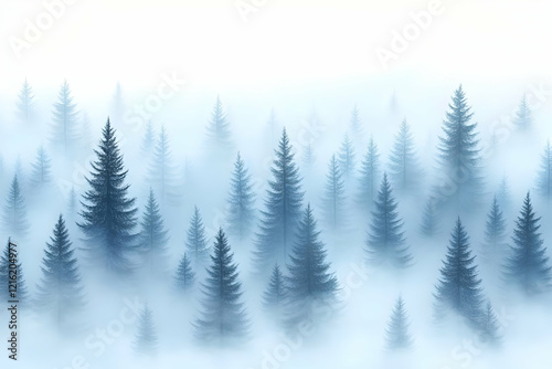 Misty Forest Landscape: Pine Trees Embrace the Fog, a Serene and Enchanting Nature Scene Quietly