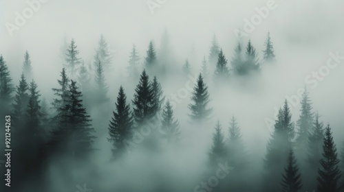 Misty Forest Landscape With Tall Pine Trees at Dawn
