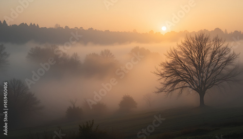 Misty morning or sunrise light.