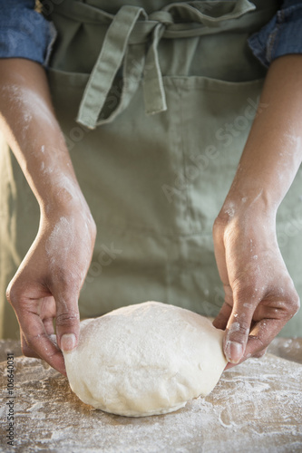 Mixed race woman kneading dough