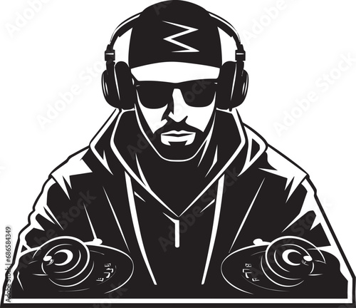Mixtape Maestro DJ Player in Sleek Black Vector Bassline Bliss Cool DJ Man Icon Vector Logo