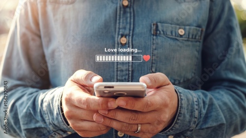 Mobile Data Loading: Hands Holding Smartphone with Progress Bar & Heart Icon for Digital Connection and Love