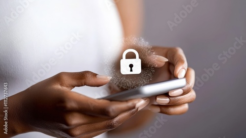 mobile payment security platform concept. A person holding a smartphone with a lock symbol, symbolizing cybersecurity, privacy, and protection.