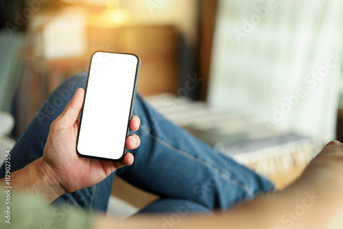 Mobile phone blank white screen mockup.texting using cell phone.background empty space for advertise.work people contact marketing business,technology