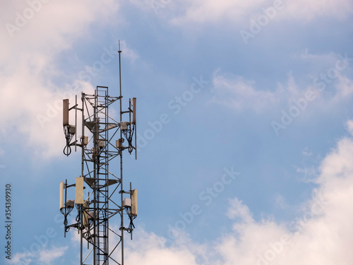 Mobile phone broadcasting tower ,Telecommunication cell site for spreading telephone signals and blue sky background