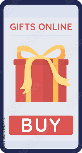 Mobile store semi flat color raster object. Buying gift and present online. Realistic item on white. Lifestyle isolated modern cartoon style illustration for graphic design and animation