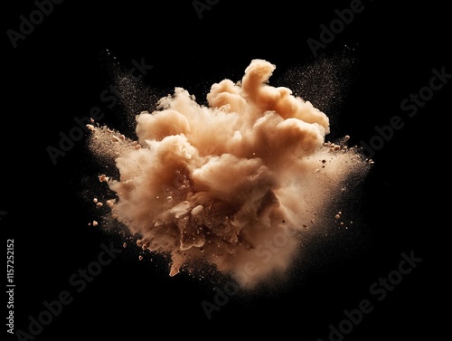 Mocha mousse colored powder exploding on black background