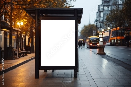 Mock up Blank advertising billboard on bus stop, Generative AI