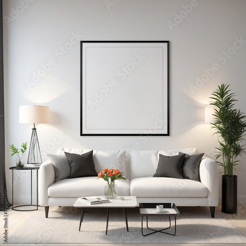 mock up poster frame in modern interior background, living room, Scandinavian style, 3D render, 3D illustration