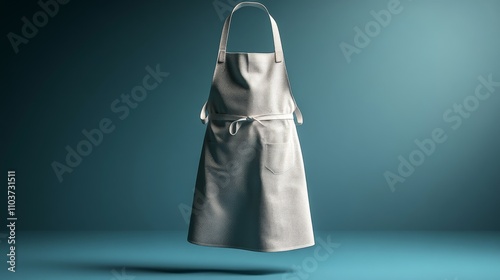 Mockup A pristine white apron, elegantly suspended against a teal backdrop