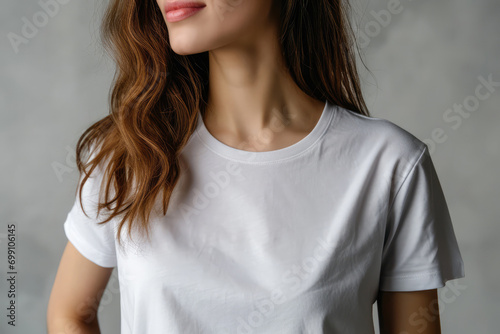Mockup Of Woman Wearing Blank White T-Shirt Design