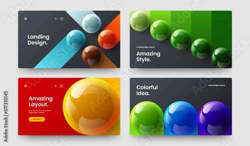 Modern 3D spheres brochure concept composition. Colorful site screen vector design template collection.