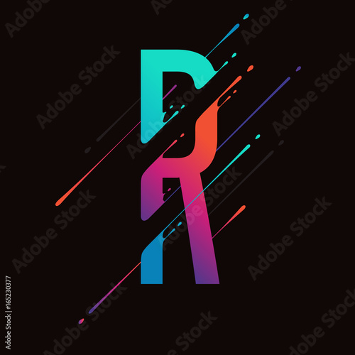 Modern abstract colorful alphabet. Dynamic liquid ink splashes letter. Vector design element for your art. Letter R