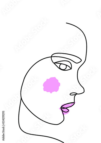 Modern abstract poster, one line drawing of woman face. Minimal pastel trendy design for card, print, wall art. Beauty and fashion concept. Vector illustration