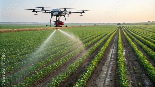 Modern agricultural drone spraying crops in a cultivated field, showcasing the implementation of advanced technology for efficient and precise farming practices