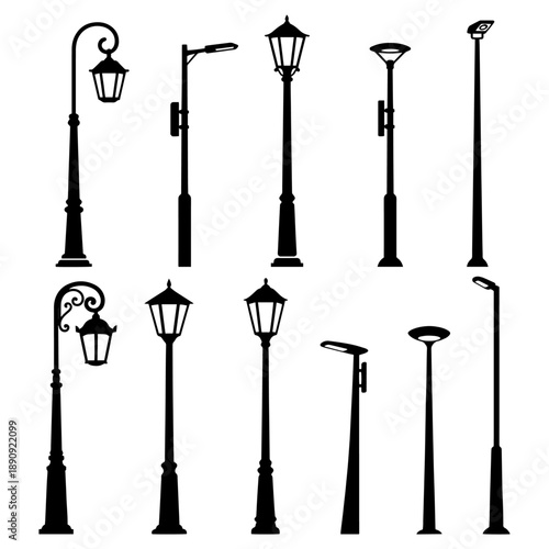 Modern and Classical Street Lights Silhouette Vector Pack - Urban Lighting Collection