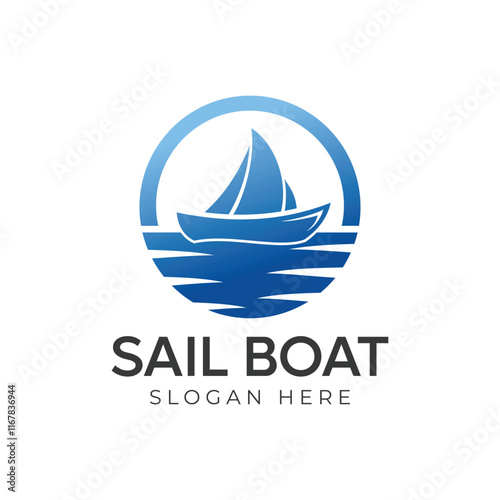 Modern and minimal boat logo icon, beach island vector template