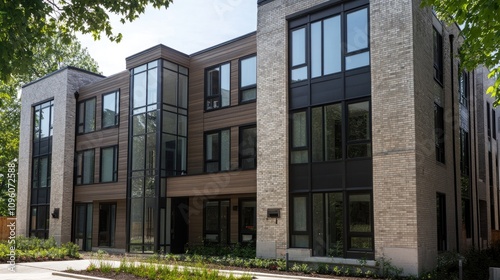 Modern Apartment Building with Large Windows