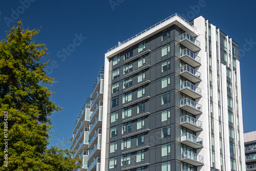 Modern apartment buildings in Richmond, BC, Canada.