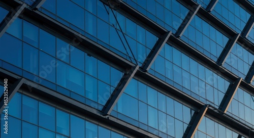 Modern architectural facade featuring a rhythmic pattern of glass and steel beams