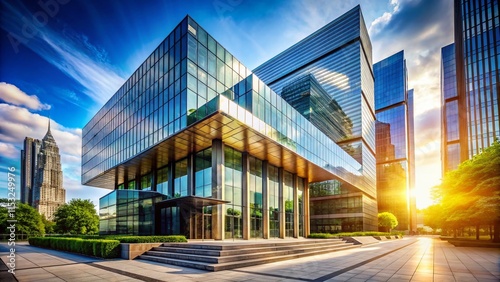 Modern Bank Building Exterior, Architectural Detail, Financial Institution Facade, Cityscape