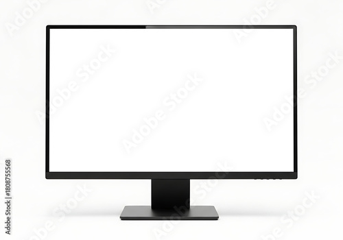 Modern black computer monitor with a blank white screen for copy space, isolated on a clean white background, front view