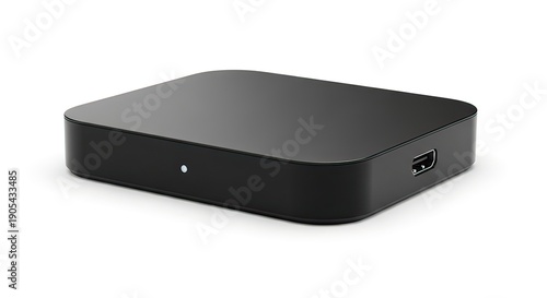Modern black electronic device with HDMI port, compact and stylish for home entertainment