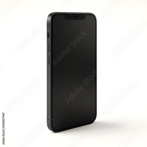 Modern Black Smartphone with Blank Screen Isolated on White Background