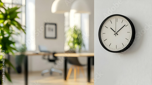 Modern Black Wall Clock in Minimalist Office Interior