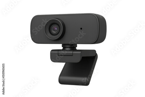 Modern black webcam on a transparent background, ready for video conferencing, streaming, or online communication