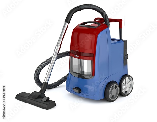 Modern Blue and Red Upright Vacuum Cleaner with Hose and Floor Brush