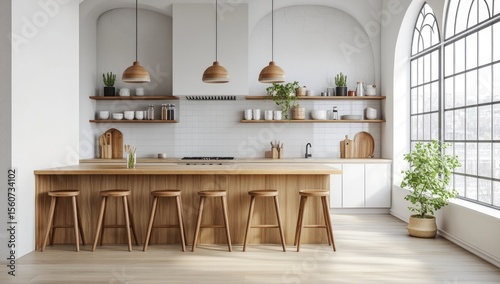 Modern, bright kitchen with light wood accents