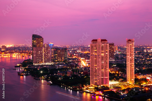 Modern building at riverside in twilight scene