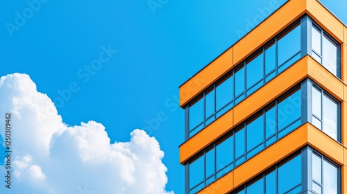 Modern Building with Bright Orange Accents Against Blue Sky