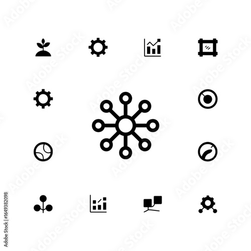 Modern business icons represent connectivity, growth, and ideas for technology and strategy presentations.