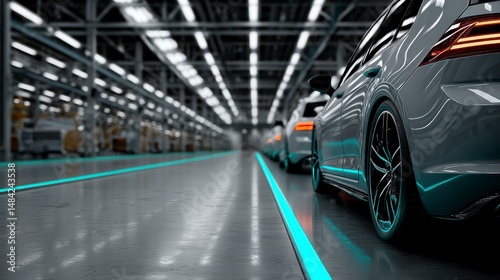 Modern Car Assembly Line Futuristic Factory Automated Production Vehicle Manufacturing