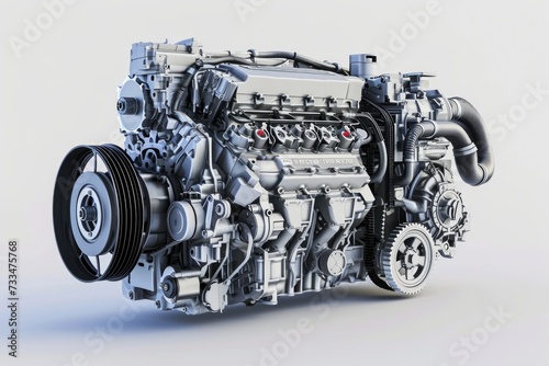 Modern car engine isolated on white background.
