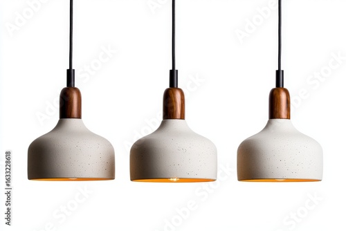 Modern ceramic pendant lamps with wooden accents in a minimalist style for contemporary home decor