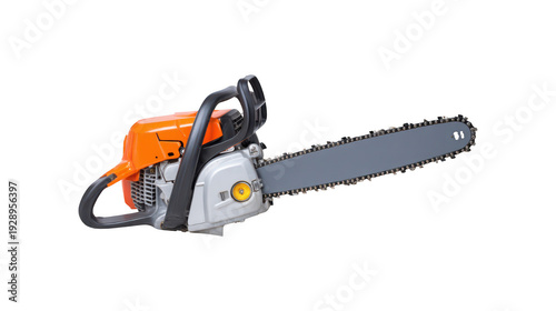 Modern chainsaw tool for cutting wood, forestry, and landscaping with a sharp chain and engine