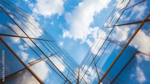 Modern Cityscape Reflection of Cloudy Sky on Urban Glass Buildings Creating Unique Perspective : Generative AI