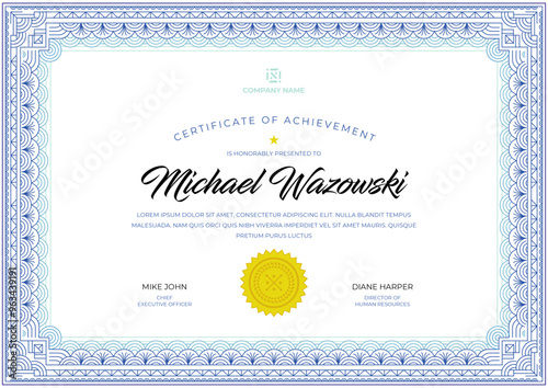 Modern Classic Certificate Diploma Award in A4 landscape in blue