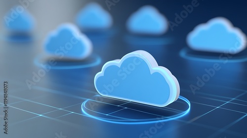 Modern Cloud Computing Concept with Blue Clouds on Digital Background Representing Data Storage and Connectivity