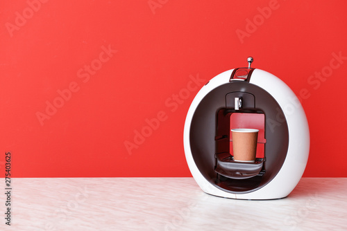 Modern coffee machine on table