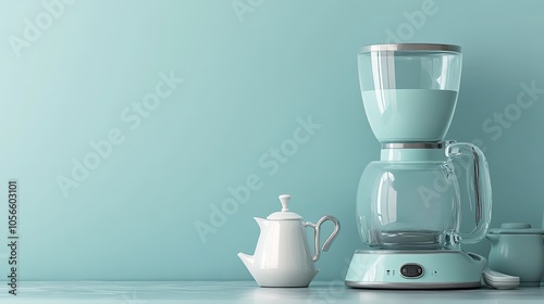 Modern Coffee Maker on Light Blue Background