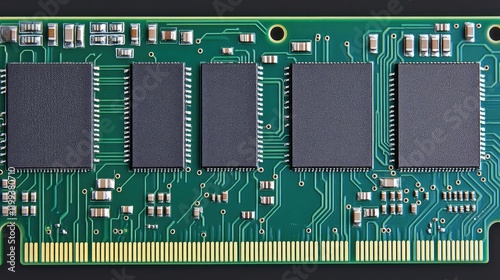 Modern Computer Chip Technology in Green Circuit Board Layout with Black Components and Copy Space for Text Ñверху.